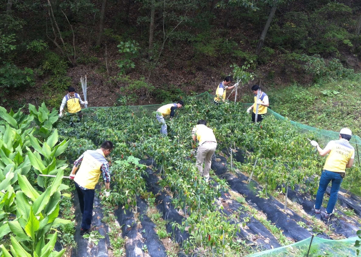 2012년 10월6일(토) 생산부문에서 혜진원을 방문하여 정기 봉사활동을 가졌습니다. 이날 고추밭 정리 및 식당청소
